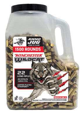 Winchester expands its rimfire lineup with the Wildcat Ammo Jug, offering 1,500 rounds of .22 Long Rifle ammunition in a durable, user-friendly container. Each cartridge is loaded with a 40-grain copper-plated Dynapoint bullet, delivering consistent ignition and a listed muzzle velocity of 1,255 fps for reliable performance across a variety of applications. The jug features a translucent body for quick visual round counts, along with an integrated carry handle and resealable lid to simplify transport and storage. Designed for extended shooting sessions, the Wildcat load provides manageable recoil and dependable accuracy, making it a solid option for target practice, training and small-game hunting.